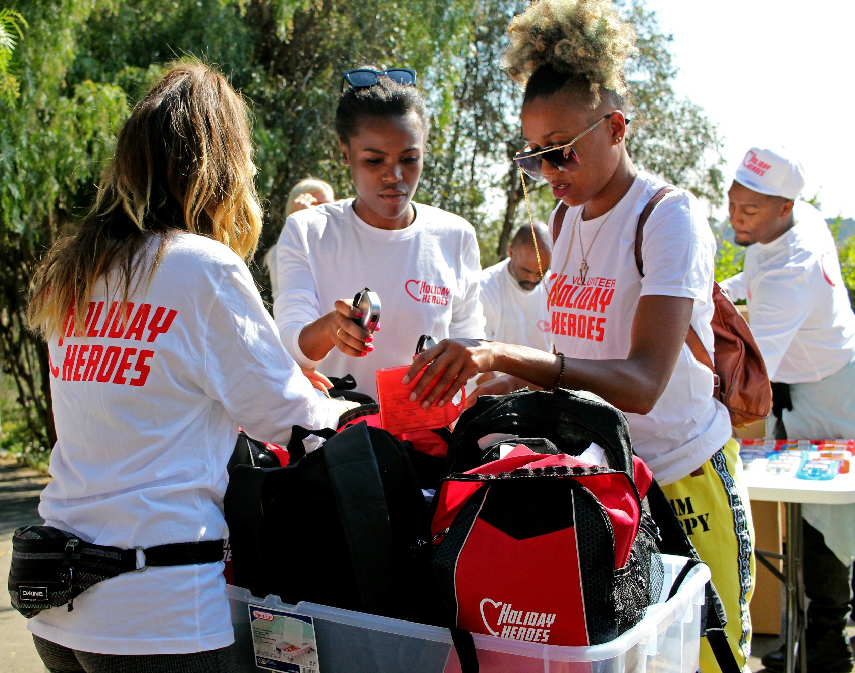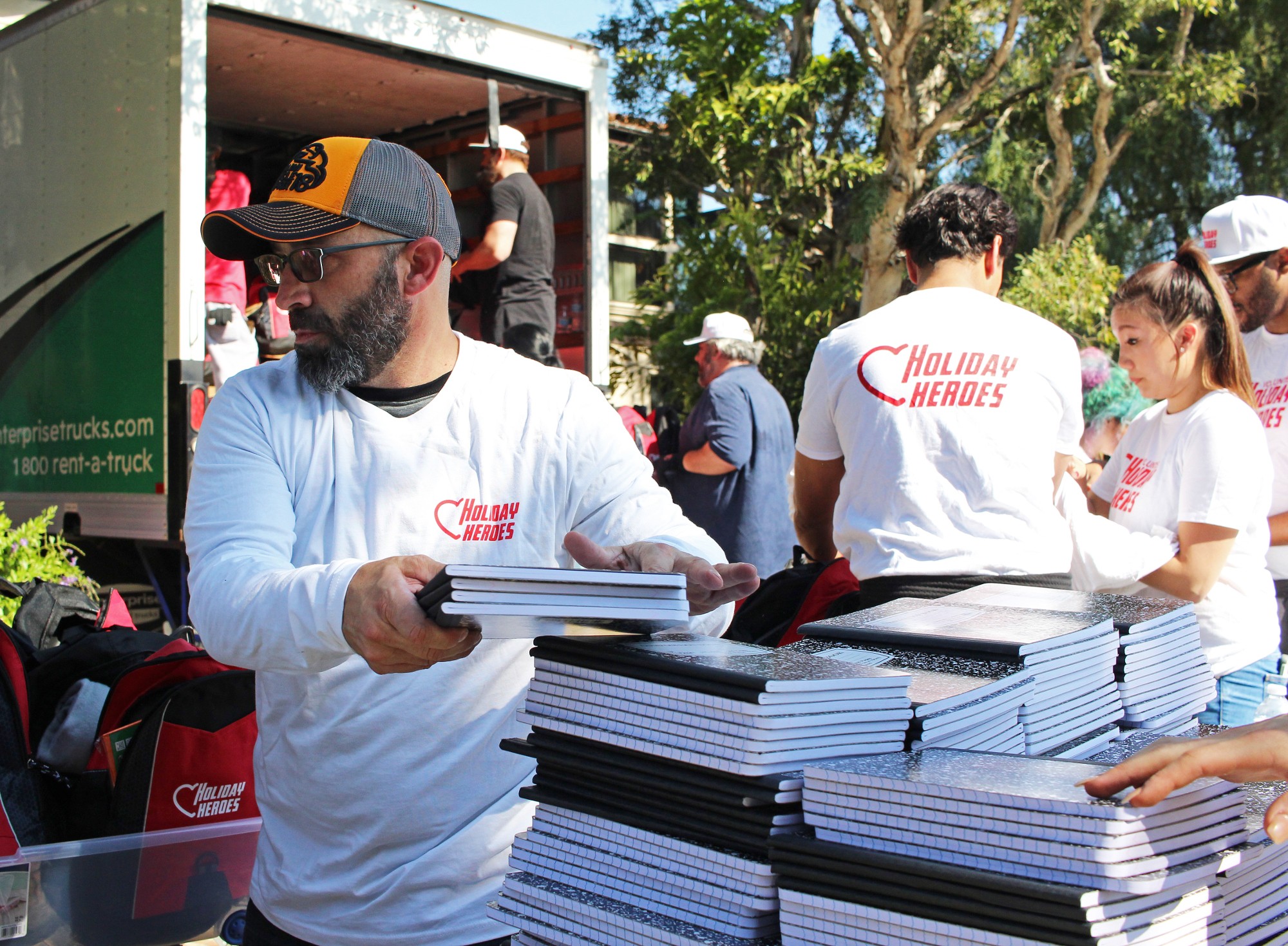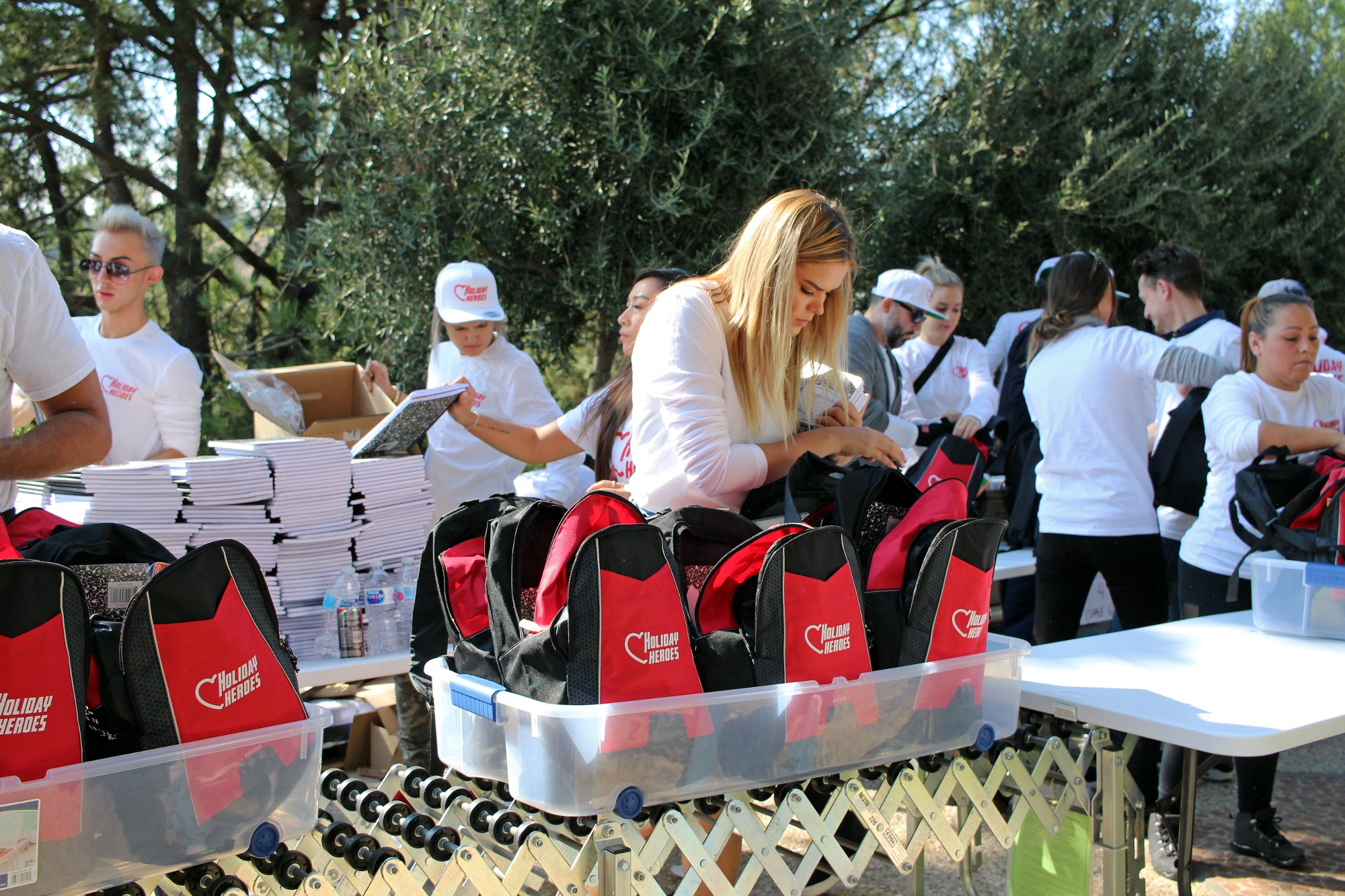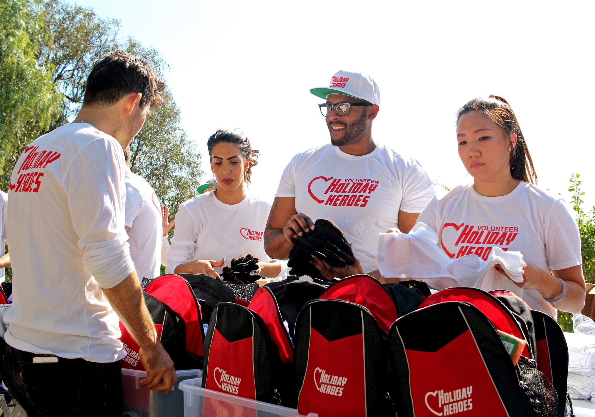 This year, Holiday Heroes celebrated Veterans Day and Thanksgiving together by working with the Department of Veterans Affairs to distribute the backpacks to homeless veterans. In addition, the program delivered other much-needed supplies to Downtown Women’s Center, Homeboy Industries, United Rescue Mission, United Rescue Mission Hope Gardens, and the homeless population of L.A.’s Skid Row.