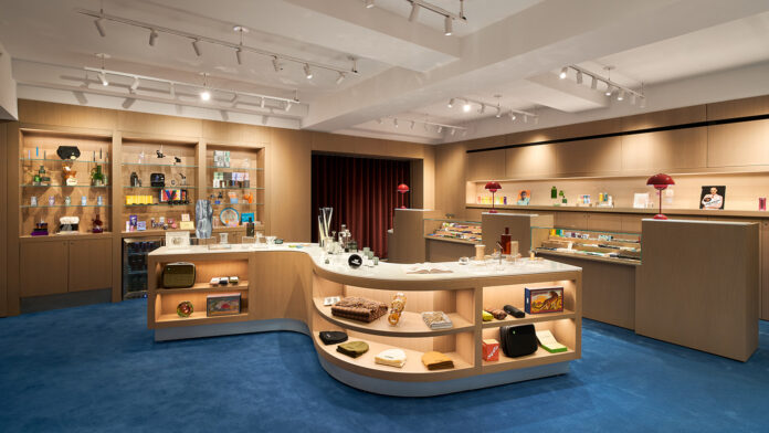 The Chelsea location combines retail flow with an artistic aesthetic. Entering guests are greeted by a calming palette of warm woods, soft neutrals, and sculptural accents. Natural textures create a tactile richness that mirrors the elevated nature of the products. Strategic lighting showcases key display zones while maintaining a gallery-like ambiance throughout, and the result is a seamless blend of boutique retail and immersive installation, where visitors move intuitively between standout product moments and contemplative artistry.