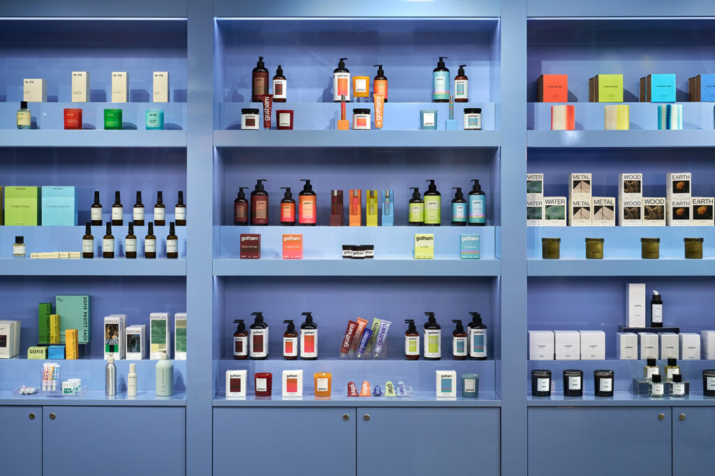 The focus on experience also extends to the store’s design. Each Gotham location features a signature arboreal art installation by artist Molly Lowe, whose sculptural trees made from recycled materials nod to the quaking aspens of upstate New York. In Chelsea, the luminous leaves—crafted from hand-painted capiz shells—create a stunning sense of serenity that works to ground the space.