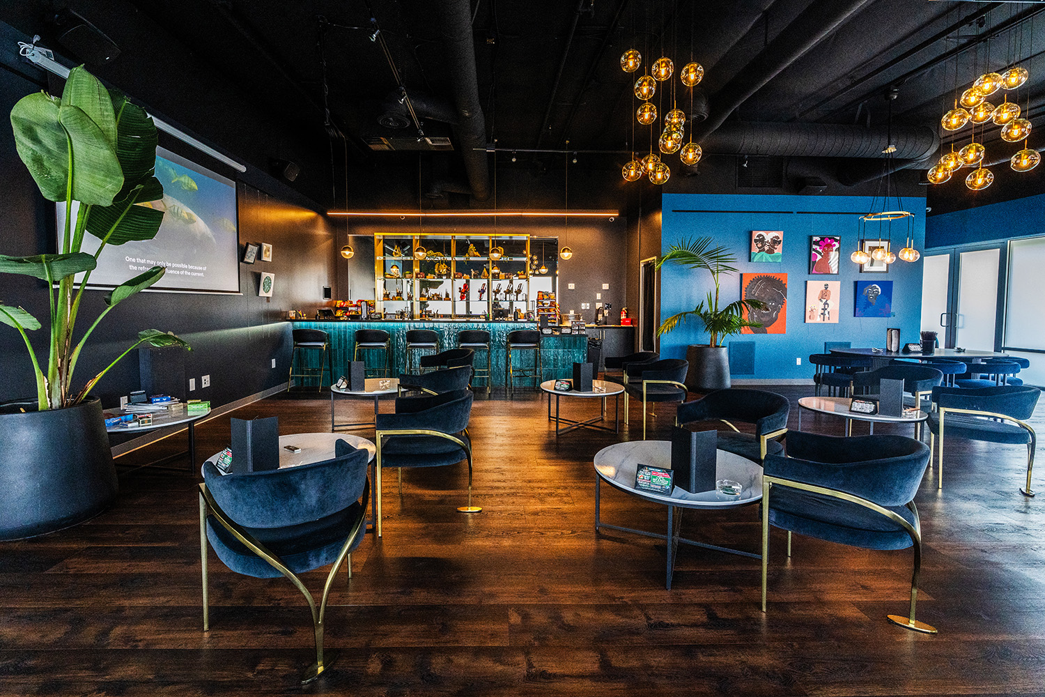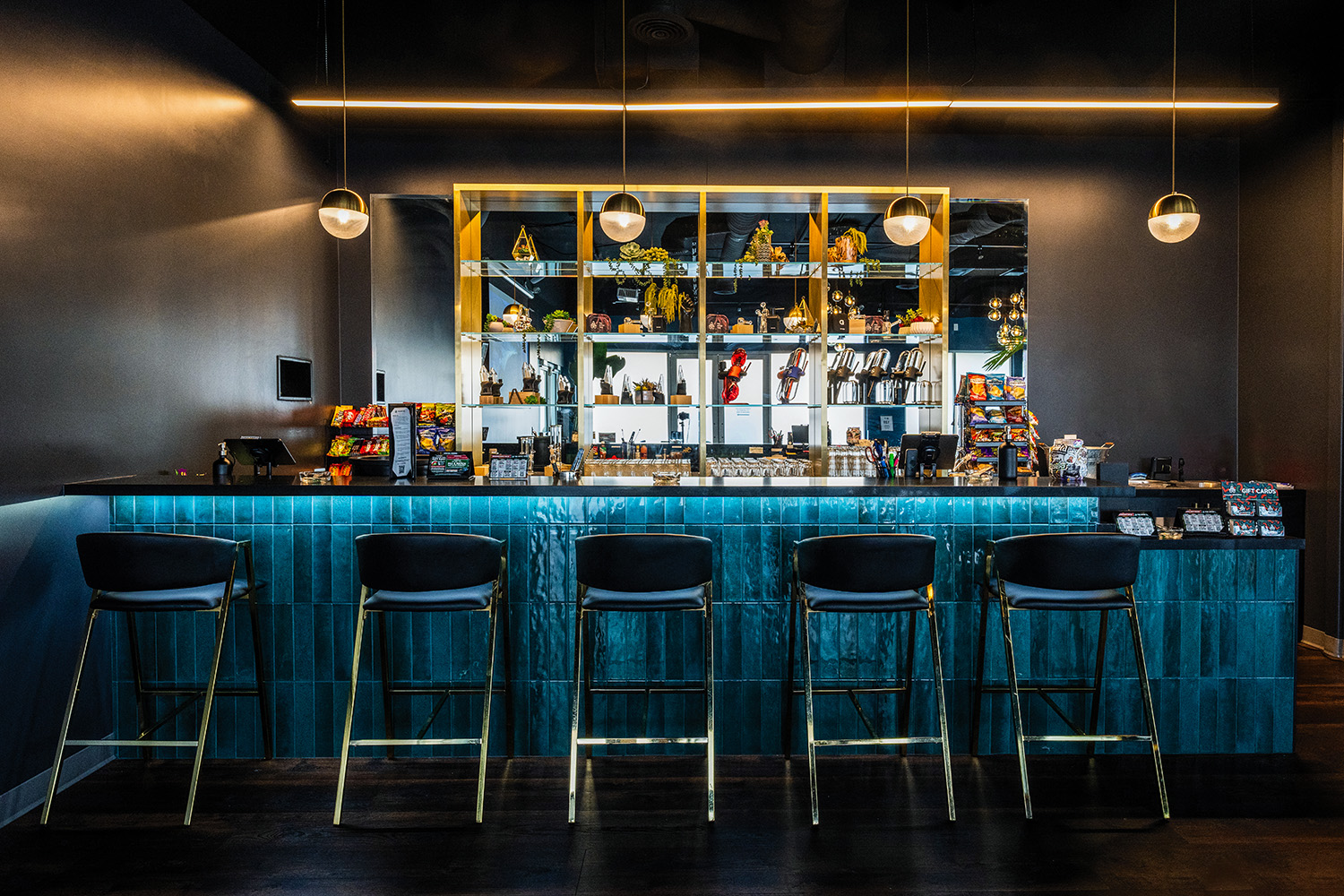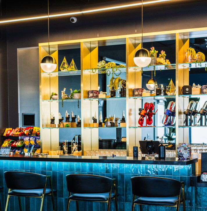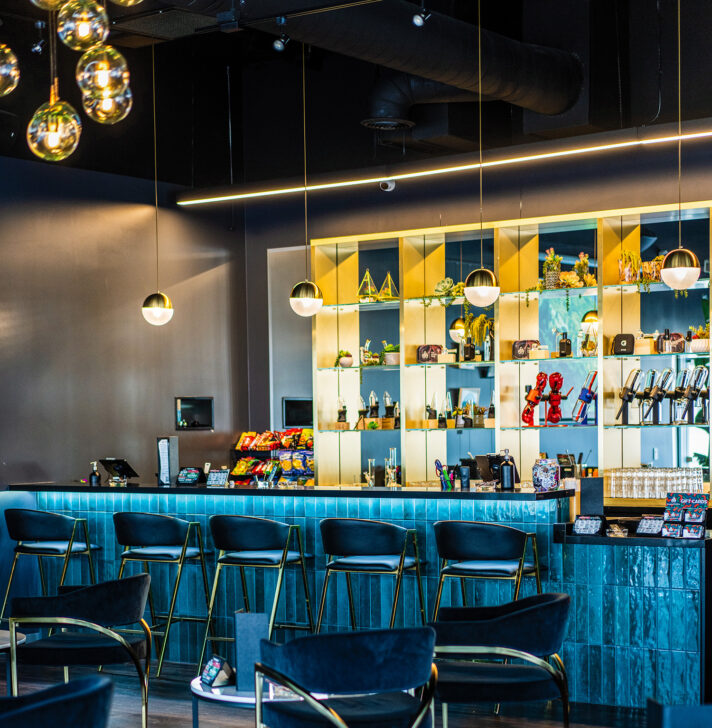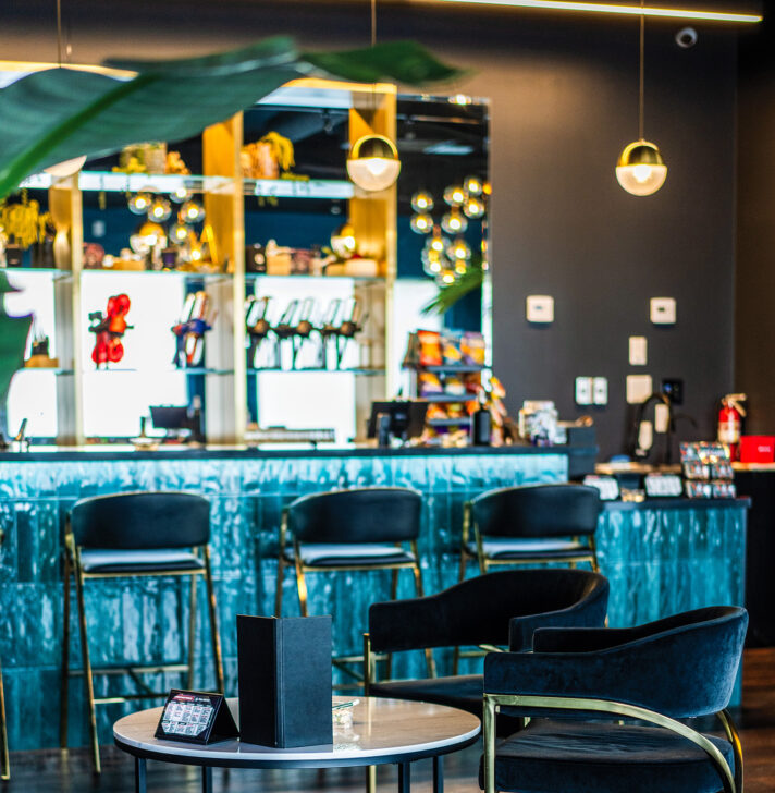 “We were really lucky with the property. We got the entire building, which we were able to subdivide into the retail and lounge space,” she said. “We’re on a great intersection, very visible to the public and right off the freeway. It’s also a newer building—high ceilings and modern bones—but it was completely empty and unfinished when we found it.”