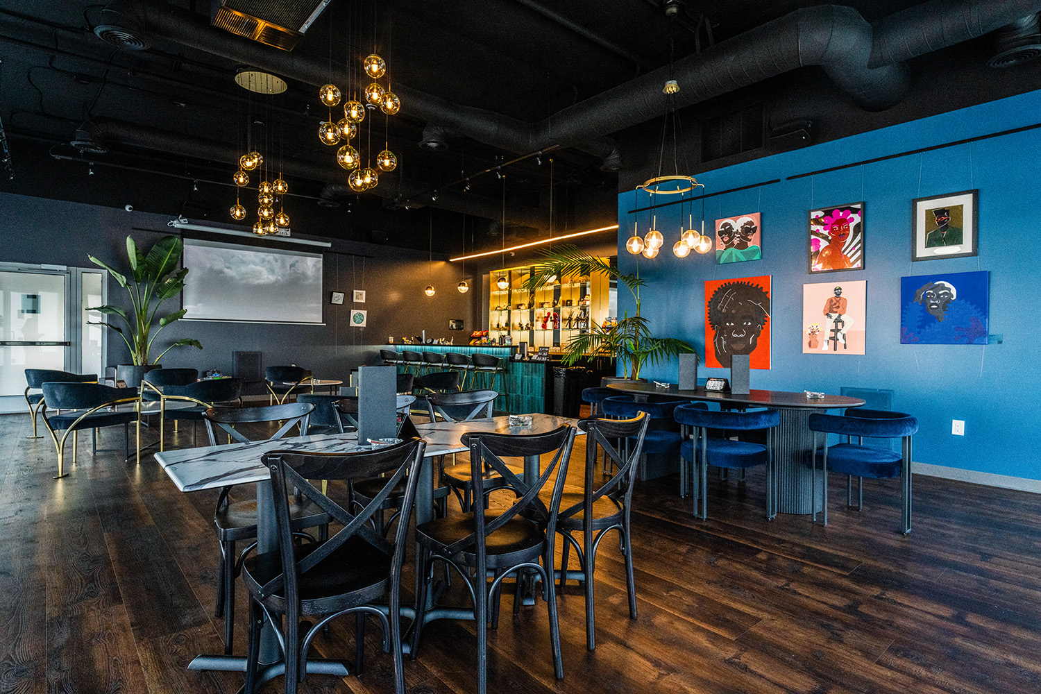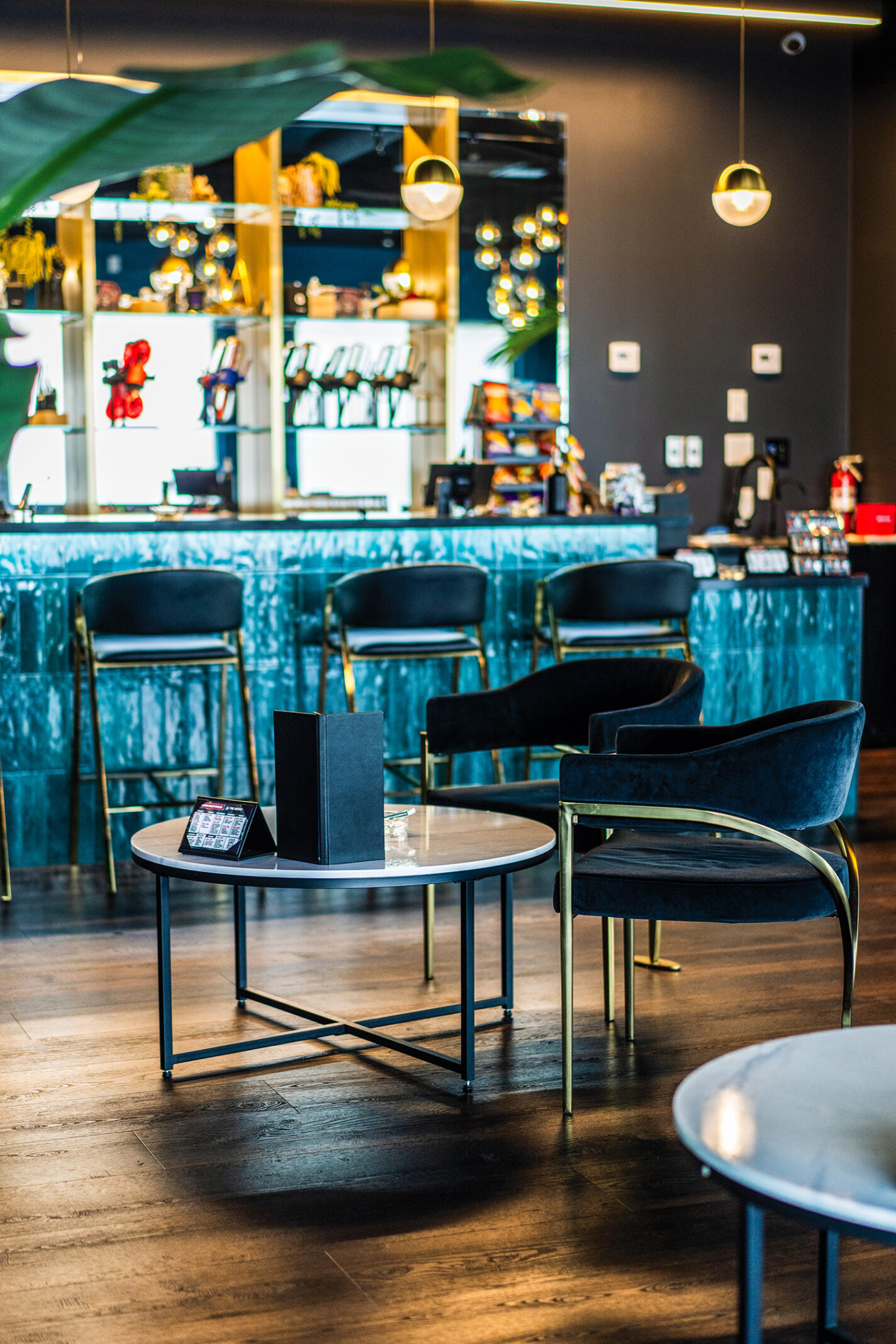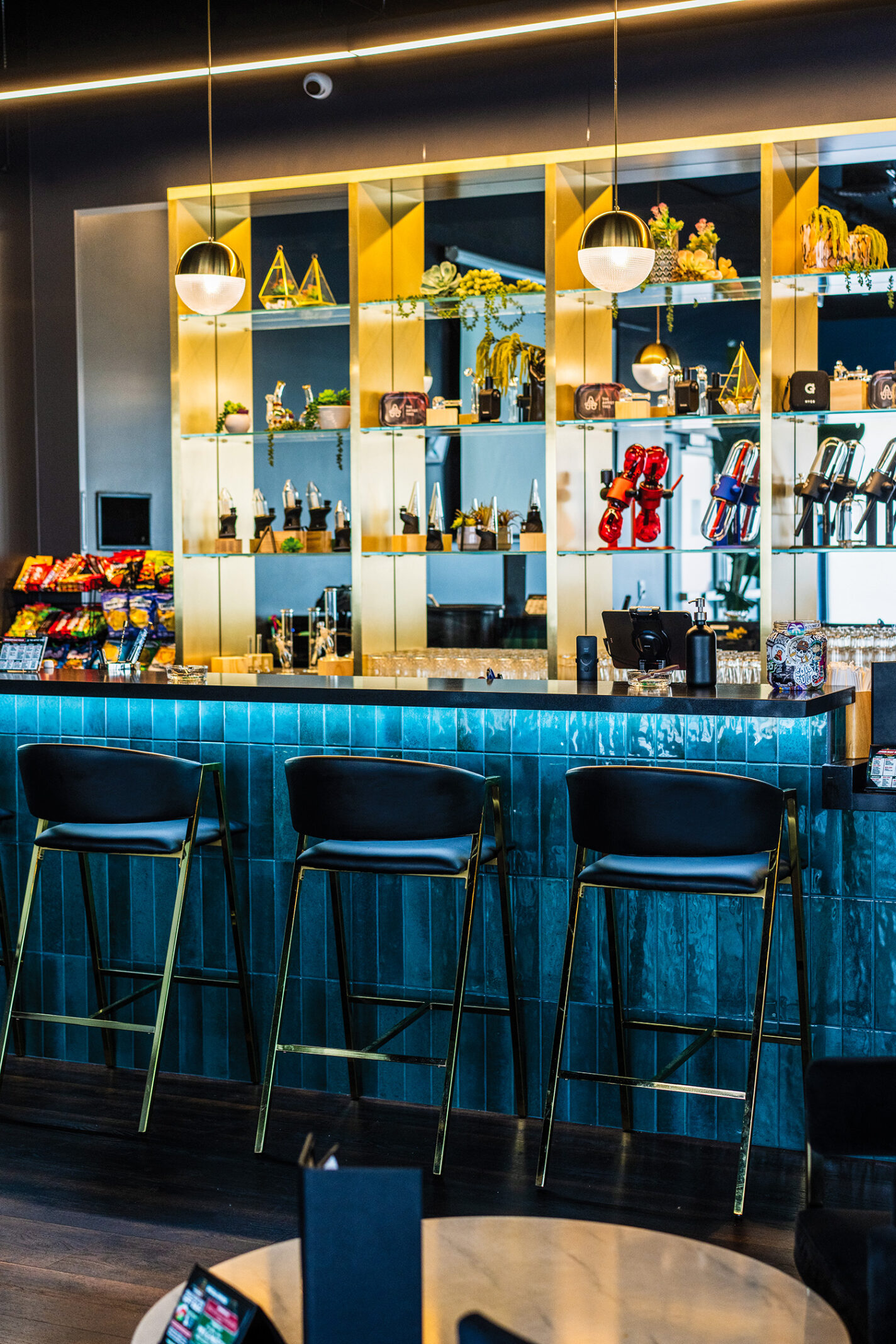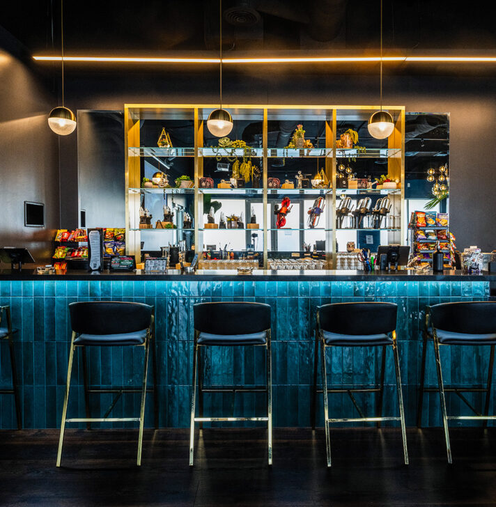 “We were really lucky with the property. We got the entire building, which we were able to subdivide into the retail and lounge space,” she said. “We’re on a great intersection, very visible to the public and right off the freeway. It’s also a newer building—high ceilings and modern bones—but it was completely empty and unfinished when we found it.”