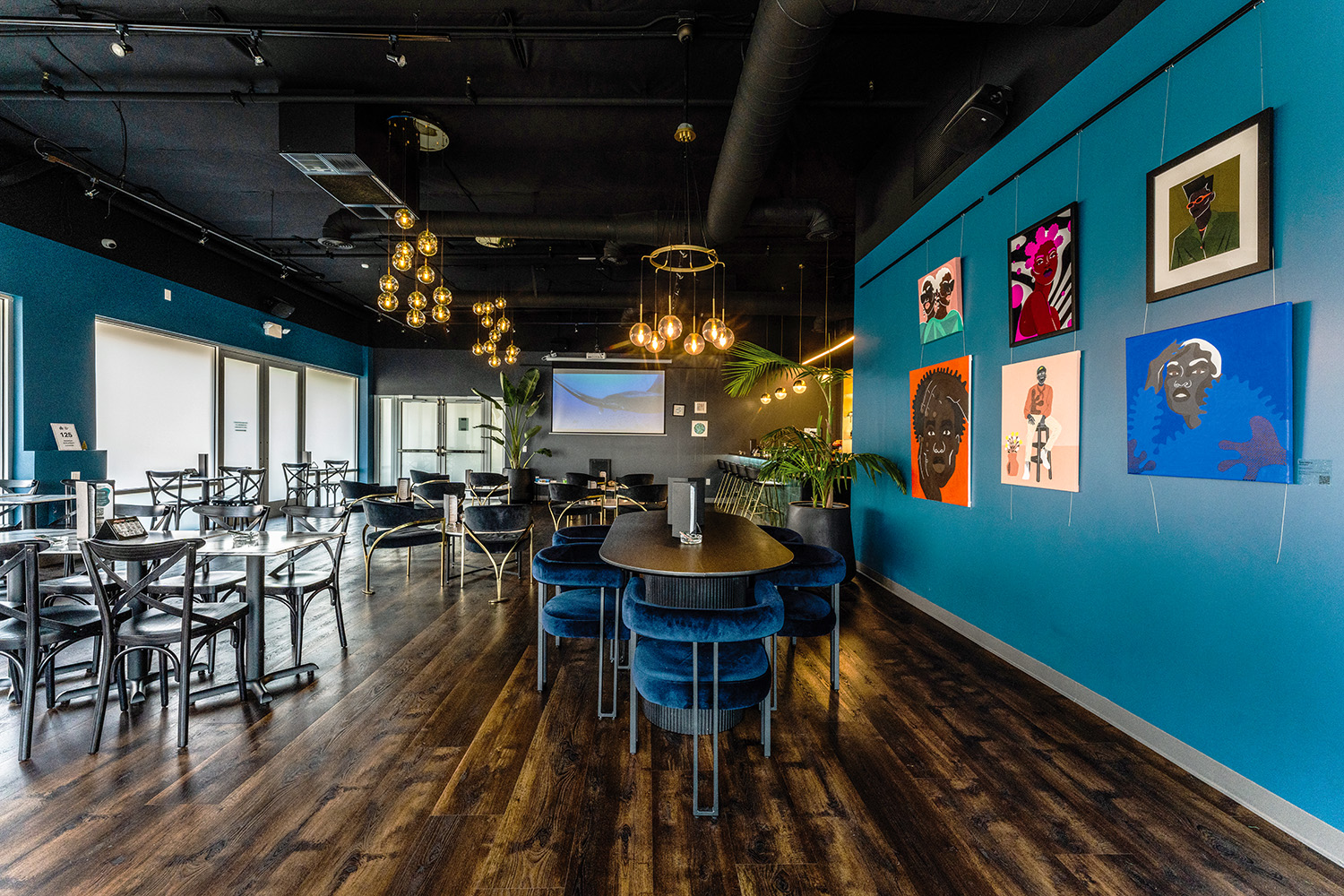 “We are very design-focused, and our art displays are a huge component of that,” Fontein said. “We wanted it to be our focal point because it’s a way to enhance our spaces and make them feel more colorful, interesting, and exciting. The art also changes; we’re currently on our second exhibit at Hawthorne. This one is more neon lighting, different phrases—really a modern, street-art feel.”
