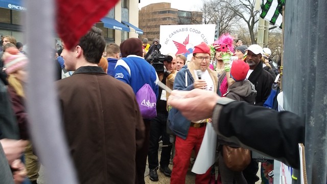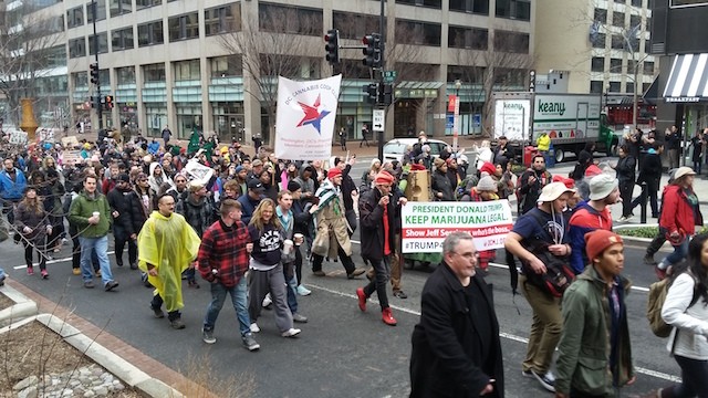 The march to the inauguration after the giveaway was still a go, but Schiller said the civil disobedience goal of a large group lighting up at four minutes and 20 seconds into Trump’s inaugural speech was changed and was not a priority. But people at the giveaway event were encouraged to march down to the inauguration anyway. “If they want to light up, they can as an act of civil disobedience since possession and smoking is not allowed on federal land,” he said