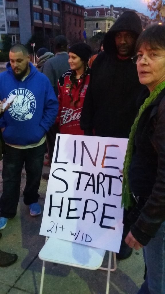 The IDs of everyone getting a free joint were checked twice, and the team of 25 from DCMJ coordinated the line down the sidewalk and across streets.