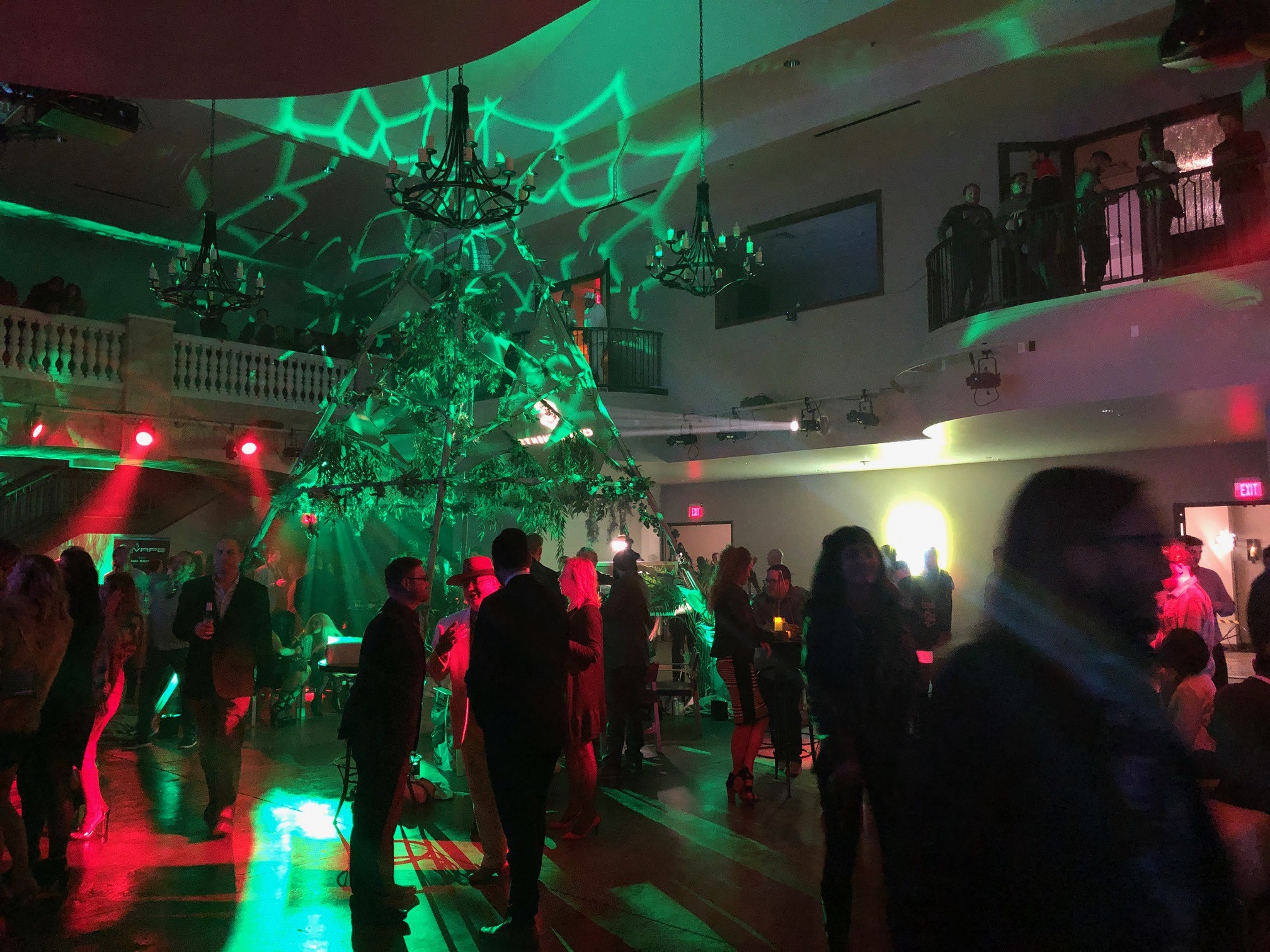 The exclusive event was held at The Venue on Fremont St., in Sin City’s historic downtown district. The longish line moved quickly, into a roomy, multilevel space, where eclectic signs and symbols awaited party goers and chain link chandeliers hung overhead.