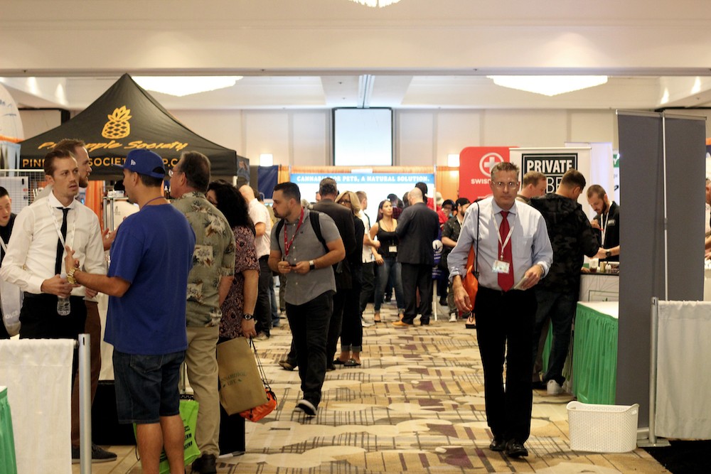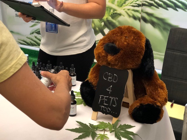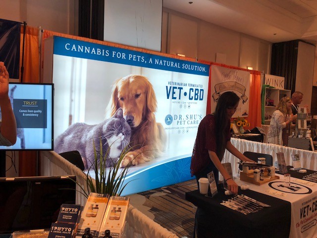 Products on display in the hotel’s Grand Ballroom ranged from vape pens and juices, to skincare, to coffee and other consumable formulations, with several lines for pets, as well as their owners.