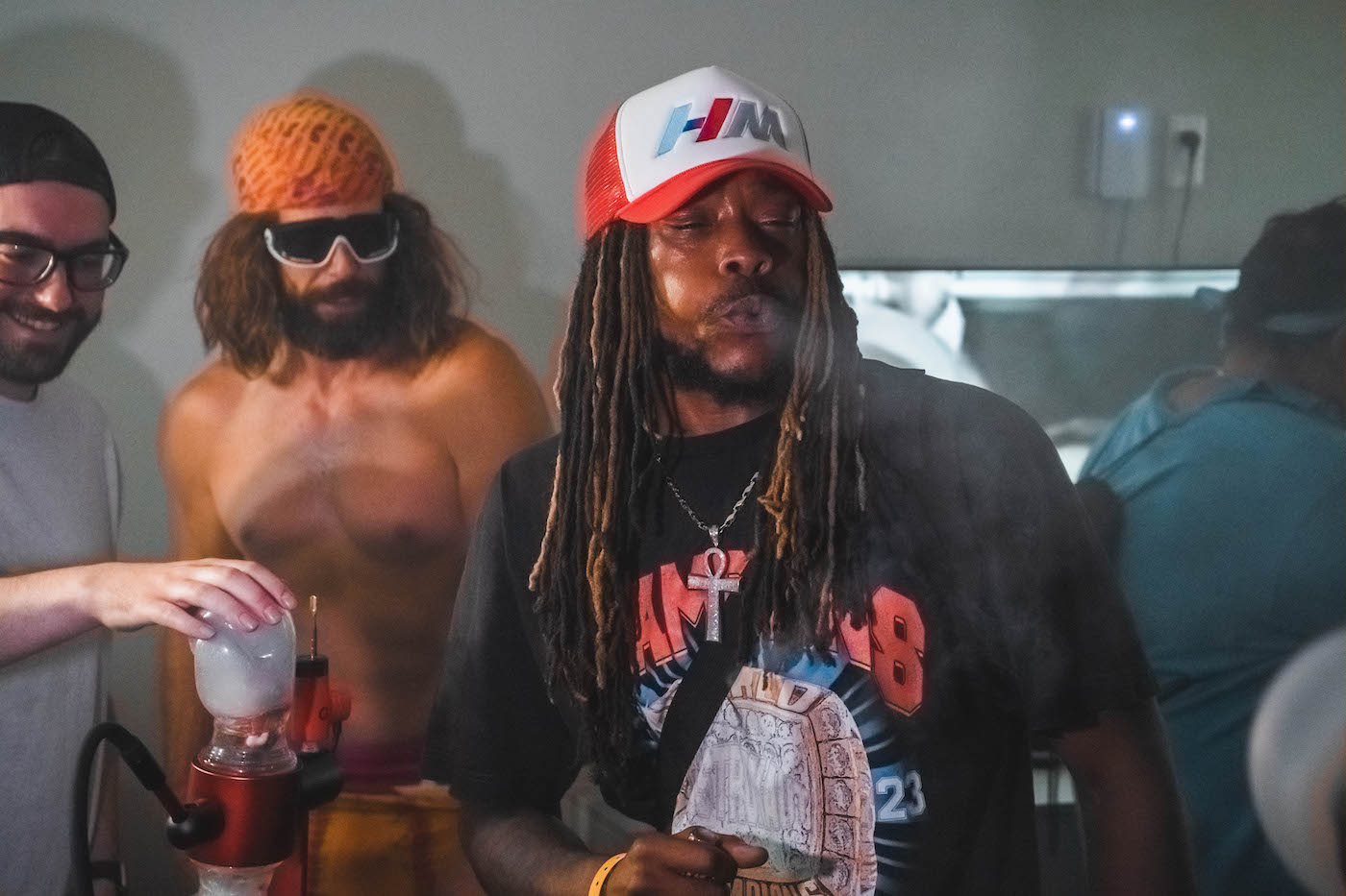 The Lexi lobby featured a lifesize wrestling ring where attendees could step in and take pictures with wrestlers clearly inspired by Ric Flair’s ’80s style. The nostalgic wrestling theme was carried throughout the hotel with sponsor activations from Captain Chronic, Lucid/Lemon Tree, Elevations Nation, Mary Jane’s Glass Productions, Dr. Dabber, and Chamber Of Cannabis. Outside guests enjoyed poolside sounds by DJ Mondo and branded cabanas by Ric Flair Drip, Polka Dot, and Select.