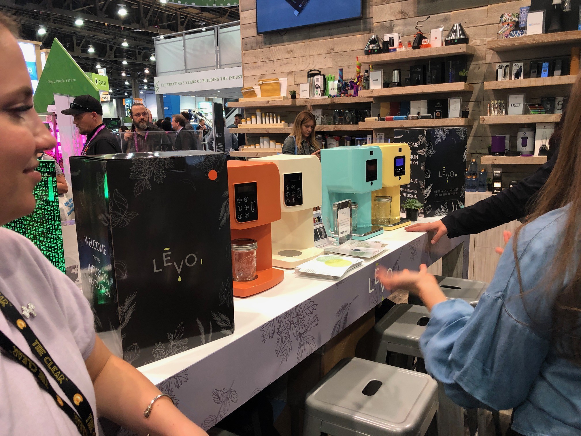 Every kind of cannabis accessory was on display, like handmade titanium water pipes at the Quiver Fabrications booth. Vape brands at the show numbered in the dozens. High-end personal vaporizers have become an intersection for design and technology, with vapes like DaVinci’s line. Other vape manufacturers on the floor included Flav Inc., Quant Vapor, PAX Labs, and KandyPens, to name a few.