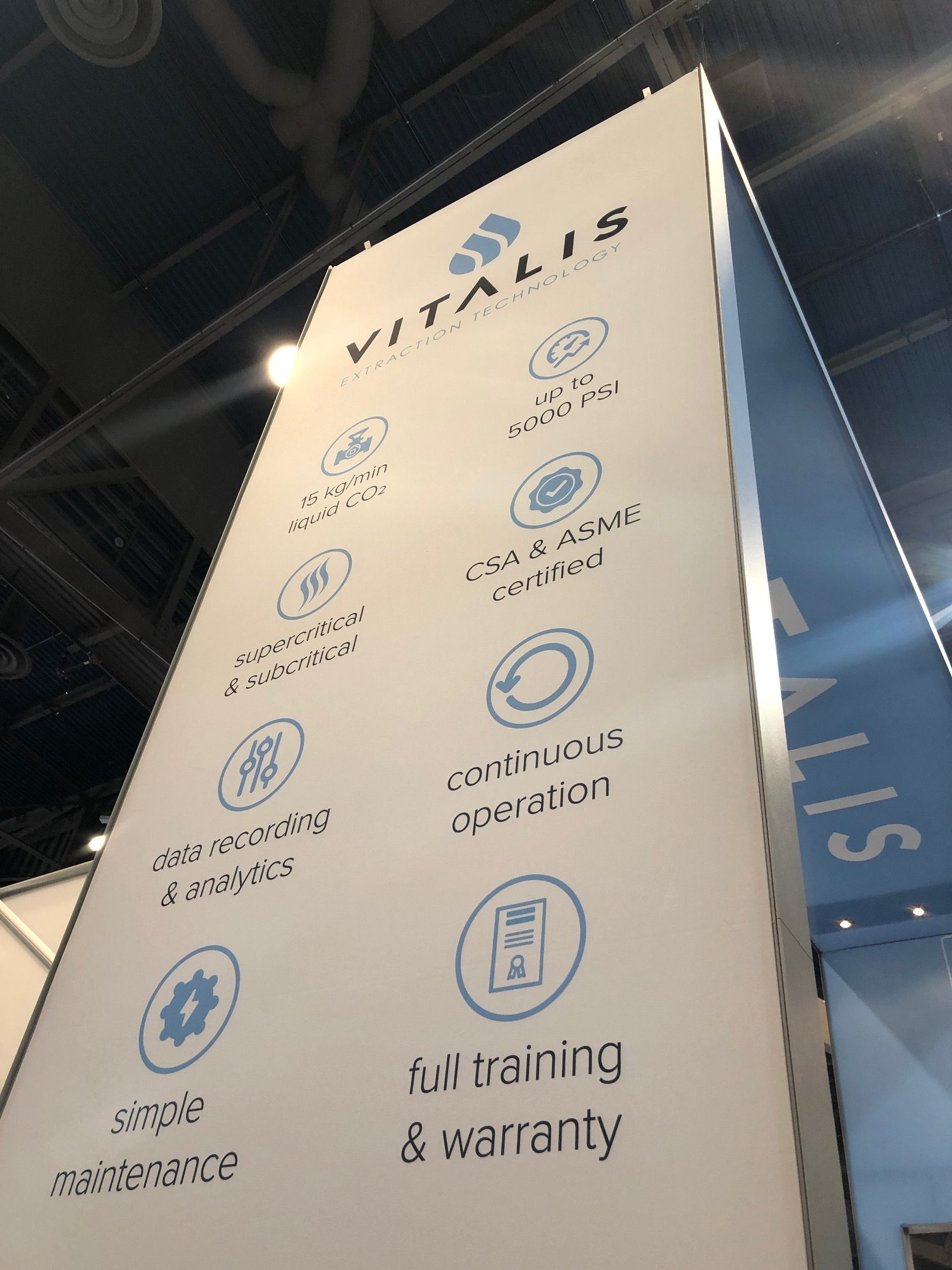 Canadian-based industrial extraction equipment manufacturer Vitlalis Extraction Technology displayed a custom-built extraction machine that looked like a small oil refinery, like several at the show. Vitalis specializes in fabricating machine components from raw metal and is able to accommodate clients’ specs in a variety of configurations, based on their facilities.